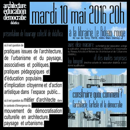 Rencontre du 24 mars à l’école d’architecture de paris la villette (ENSAPLV) autour de la parution du dernier ouvrage collectif de didattica