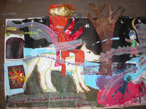 Cette intention s’est traduite par l’animation de quatre ateliers pédagogiques de création dans des écoles en parallèle à l’organisation du 8 avril. Ces ateliers avaient pour objectifs de réunir et de faire réfléchir des enfants de Montreuil autour du thème du peuple rrom et d’aller à la rencontre de sa culture. La méthode a consisté à faire produire par chaque groupe une oeuvre collective en convoquant plusieurs savoirs et savoir faire, grâce à l’accompagnement d’intervenants issus du Collectif du 8 avril.