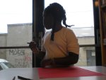 24 avril 2014, par Antonia Lair, Léa LongeotL’objectif de la séance d’aujourd’hui est de compléter les grands dessins d’espaces du récit, débutés à la 6e séance. Il s’agit de dessiner des éléments de décors et de photographier des expressions d’émotions afin de les intégrer aux grands dessins, à la séance suivante. Les photographies de mises en scène dans le quartier, prises la semaine dernière par les filles, sont accrochées sur les étagères de la bibliothèque. Elles sont accompagnées d’iconographies représentant des outils. Diaba (…)
