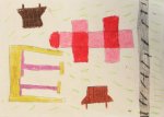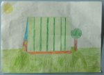 Enzo, en 6è E, dessine sa cabane. Au dos du dessin, il en fait l’inventaire.