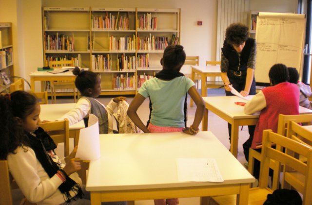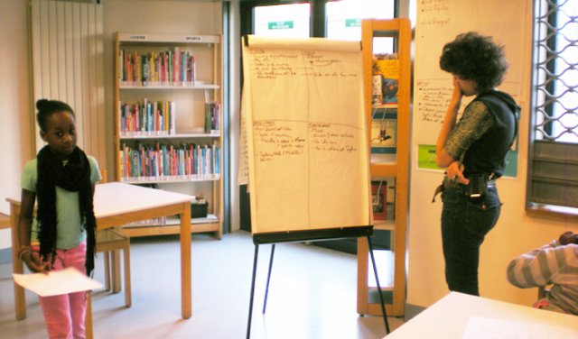 Les enfants s’installent et commencent à écrire des morceaux d’histoires. Stella les encourage : « Il peut y avoir plusieurs personnes, plusieurs éléments perturbateurs. Vous racontez ce que vous voulez, vous pouvez avoir plusieurs idées. ».
