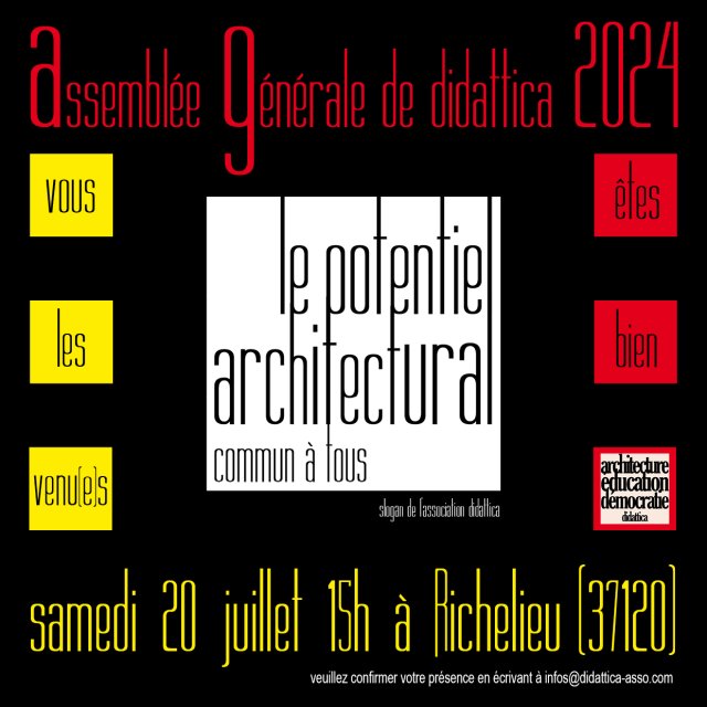 Après Montreuil, Paris, Toulouse, Poitiers... Richelieu est la prochaine ville où se déroule l’AG de didattica 2024. Soyez les bienvenu.e.s. Le lieu de rendez-vous vous sera transmis si vous nous le demandez.