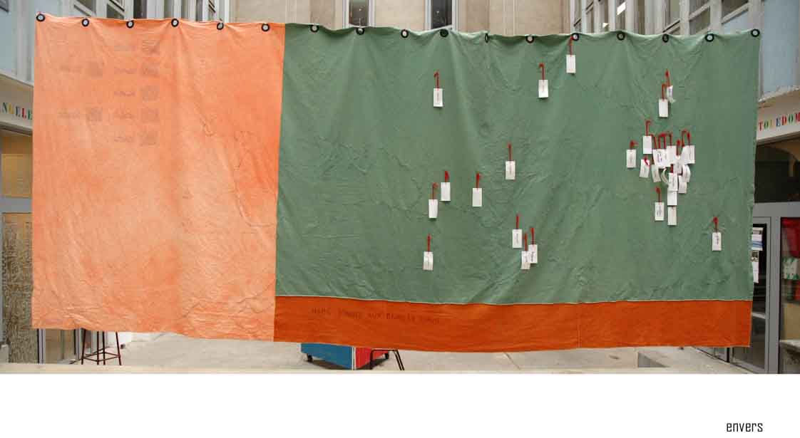 L’exposition s’articule autour de plusieurs dispositifs scénographiques qui fonctionnent autour d’un endroit (intérieur invisible) et d’un envers (extérieur visible).