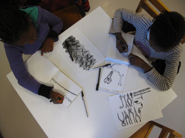 Elles sont très appliquées, regardent et s’inspirent des images et livres que Stella a mis à disposition.