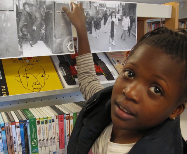 Diaba informe les membres de l’atelier : « Ce matin, on a vu Michel, il était dans sa voiture ». Stella enchaîne : « Aujourd’hui, on va travailler à partir des photos prises la semaine dernière ».