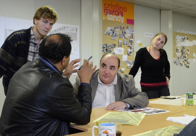 Des ouvriers du collectif, les architectes-pédagogues et le scribe-photographe de didattica. Là, pour créer un espace de rencontre et de production.