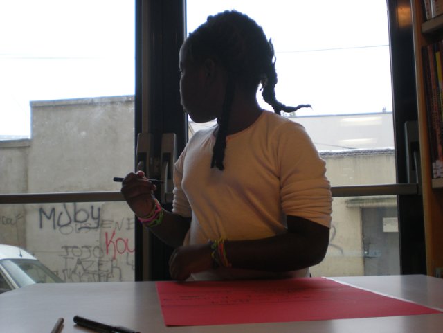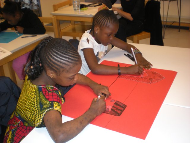 Après la distribution de feuilles de couleurs, les filles se lancent. Ce n’est pas évident au début. Diaba se plaint « Moi j’ai fait n’importe quoi… ». « Mais non ! », lui répond Sephora.
