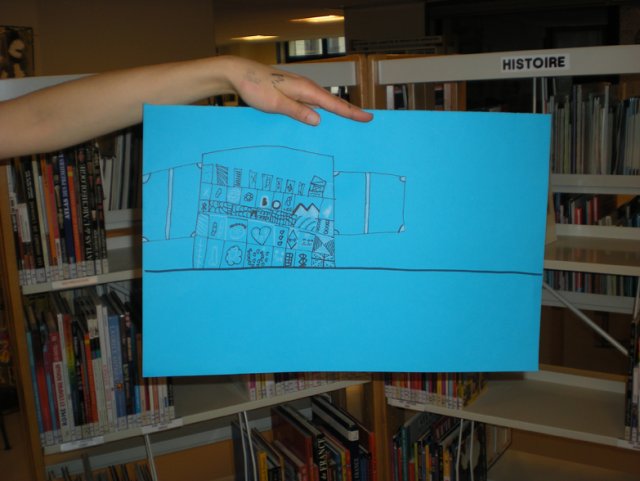 Diaba interroge « Est-ce que je peux faire des livres dans la bibliothèque que j’ai dessinée, comme le Petit Ours Brun ? »