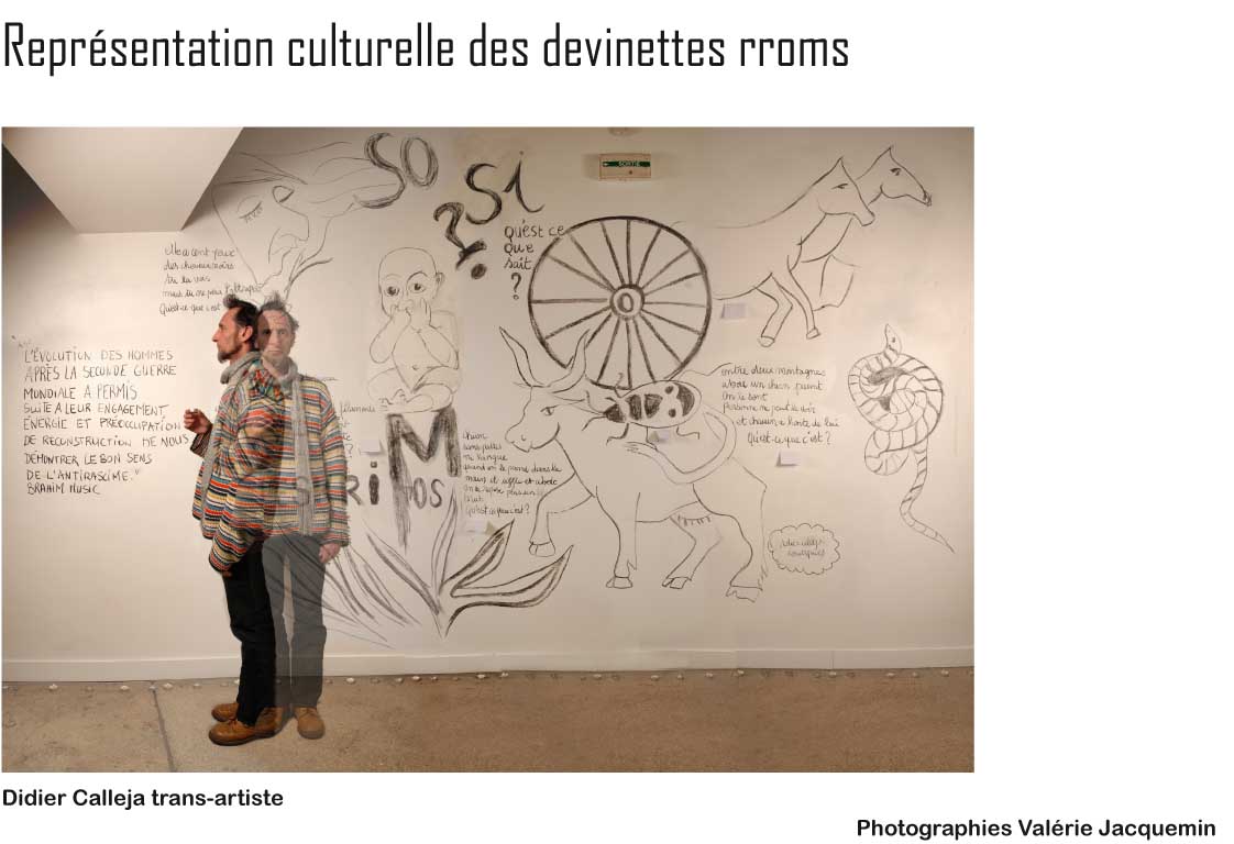 Dans la salle de projection, deux films produits et réalisés par didattica, dans le cadre de ce projet qui comprend aussi bien ce travail d’exposition sur les représentations qu’un projet de film participatif, que l’organisation de la Journée mondiale des Rroms (en 2007, 2008, 2009), que la tenue d’ateliers pédagogiques en milieu scolaire ou associatif, qu’un ouvrage et des films témoins du processus.