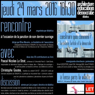 à l’occasion de la la parution du livre "Construire quoi, comment ? L’architecte, l’artiste et la démocratie"