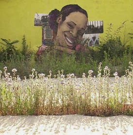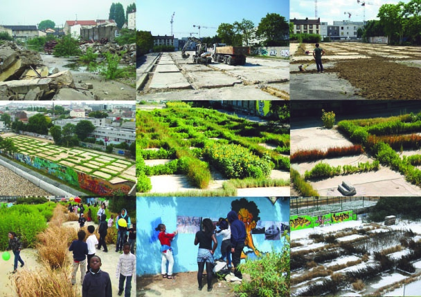 Les élèves de 3ème A et de 3ème du collège Rosa Luxemburg ont réalisé un travail de photomontage et de slogans graffés sur les murs du Jardin.