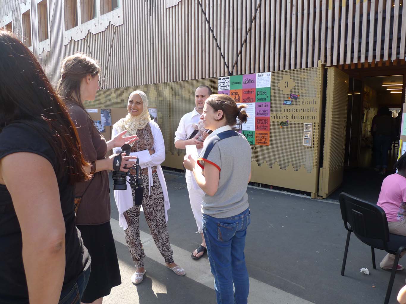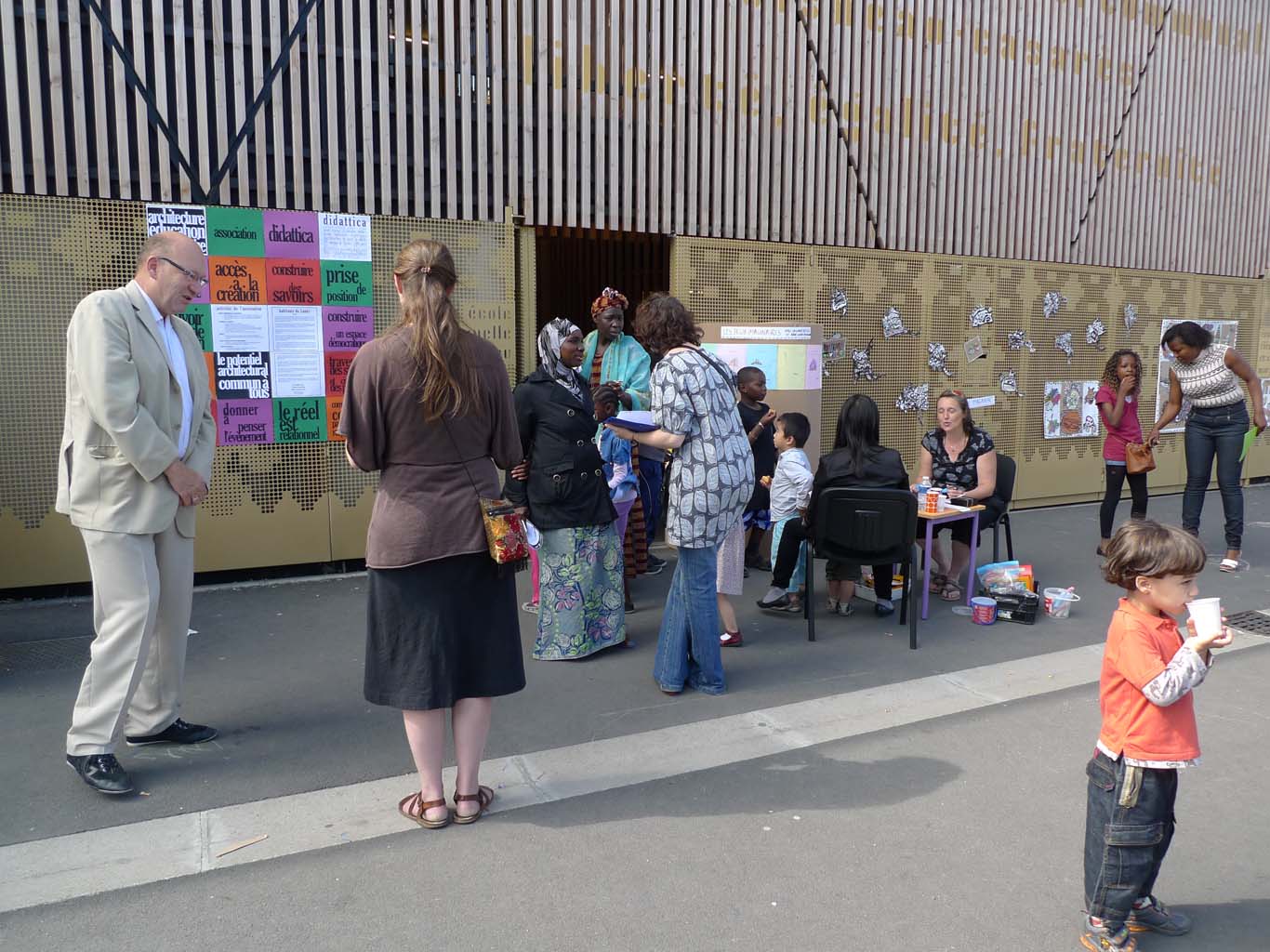 Trois des cinqs enseignantes qui ont portées le projet avec leurs élèves, Marie Pluet, Anne-Claire Ronayette et Adeline Besson, étaient accompagnées de membres de l’association Auberfabrik et de Léa Longeot de Didattica. Rompus aux expérimentations artistiques en collaboration avec les habitants d’Aubervilliers, Sylvie Napolitano et ses collègues d’Auberfabrik participeront à l’Atelier de création urbaine animé par des architectes de Didattica et la collaboration d’Alessandrat de l’atelier de Launay, au centre Roser à partir de septembre.