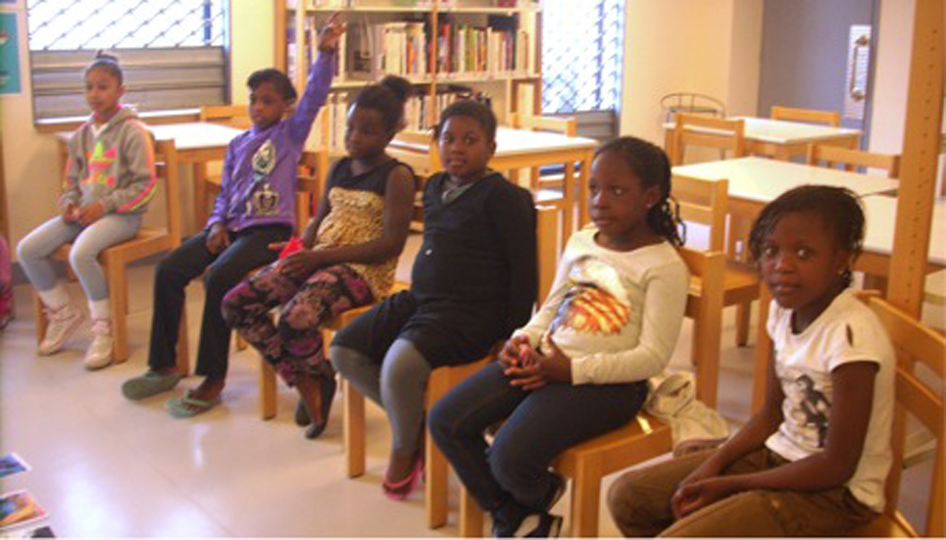 Maintenant c’est la pause, les enfants choisissent un livre pour la prochaine séance et remplissent la fiche technique que leur distribue Stella. Sylvie les aide à la compléter. Nom, prénom, nombre de frères et sœurs, école…
