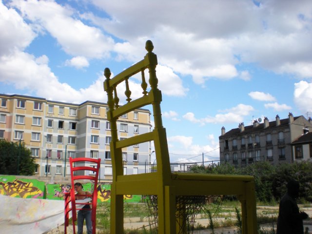Diaba répond : « Je suis énervée, je suis triste, c’est ennuyant à la cité », Maëlys « Si c’est ennuyant pourquoi tu joues là-bas ? », Diaba rétorque « Je ne vais pas rester chez moi ! ». Maëlys reprend « Je suis pressée que le chantier se termine, le sol sera lisse, on pourra jouer dehors. », Aïcha explique timidement « En fait, quand je passe devant le Landy, il y a un grand panneau, ils vont faire le parc ! »,