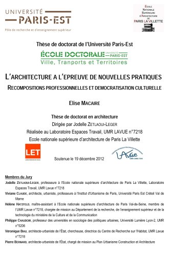 Thèse de doctorat en architecture, Elise Macaire, architecte DPLG