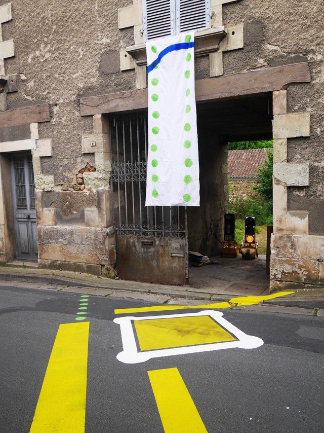 Atelier peinture sur la voie de la rue de l’Église, travail sur l’entrée du 83, 4 juin 2016