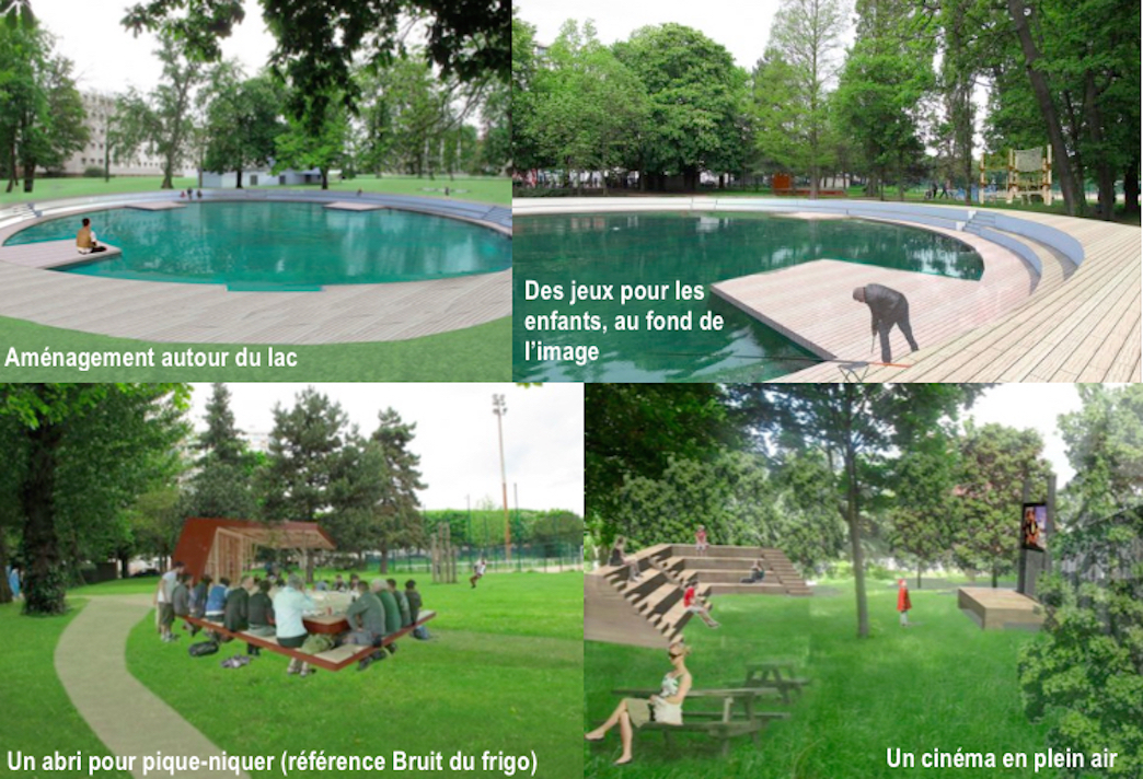 J’ai dessiné un plan-masse qui synthétise toutes les idées des enfants, cherchant à les intégrer dans le contexte urbain et faisant notamment des articulations spatiales qui complètent et précisent les aménagements. Puis, j’ai réalisé des montages photos avec les propositions d’aménagements des enfants en vue de la présentation à l’école d’architecture, au sein de mon cours. Ce travail participatif a aussi été présenté pour l’obtention de mon diplôme d’architecte en Sardaigne.