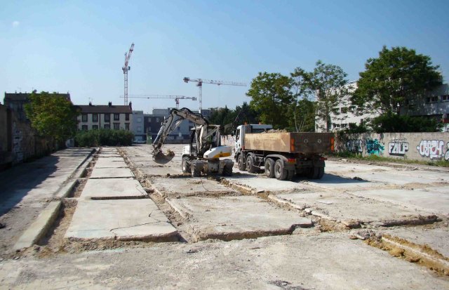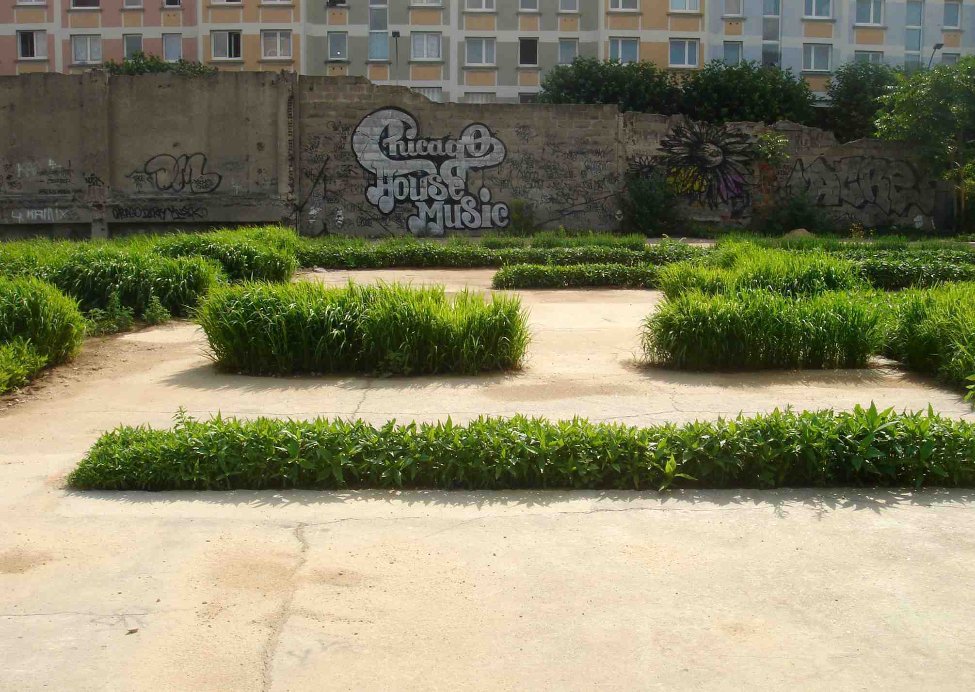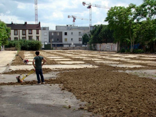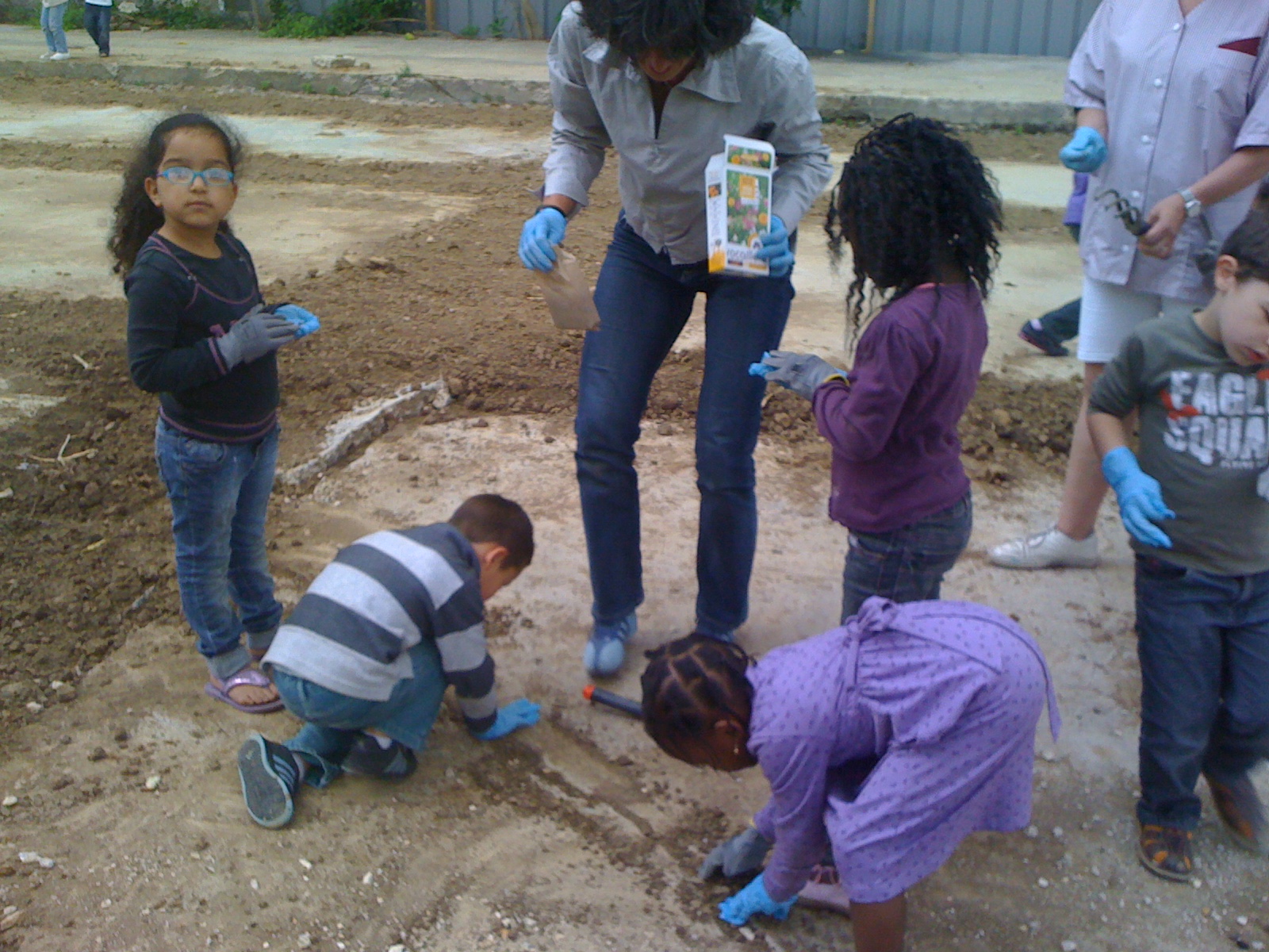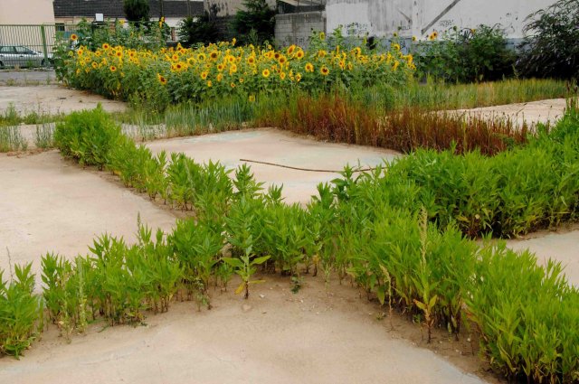 décharge, camions, enfants et tournesols