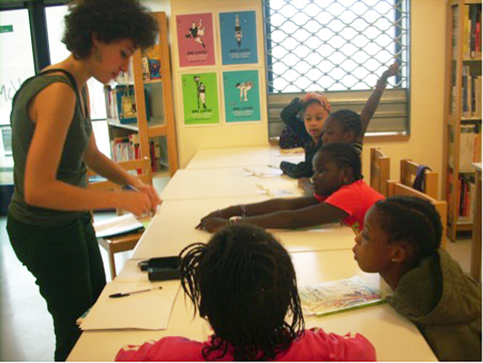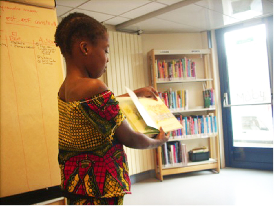 Assez discuté, Horia distribue les livres choisis la semaine dernière par les filles. Stella annonce le travail de ce jour : « Nous allons fabriquer un livre qui raconte une histoire collective autour du chantier avec les histoires de chacune. Et pour cela, nous allons analyser des livres. Vous savez ce que signifie le mot analyser ? », Diaba, aussi réactive que d’habitude, répond « Comprendre mieux l’histoire, comment elle est construite. ». « Et l’élément perturbateur ? Vous vous souvenez ? », poursuit Stella, Bidia répond « Quelqu’un qui embête. », Maëlys « Un objet qui perturbe quelqu’un ? », Diaba « Un élément qui dérange dans l’histoire. », Stella s’enthousiasme « Oui c’est ça ! Et la fin ? Comment peut-elle être ? », Bidia « Parfois bien, parfois mal. Ça peut être triste ou faire peur… ».