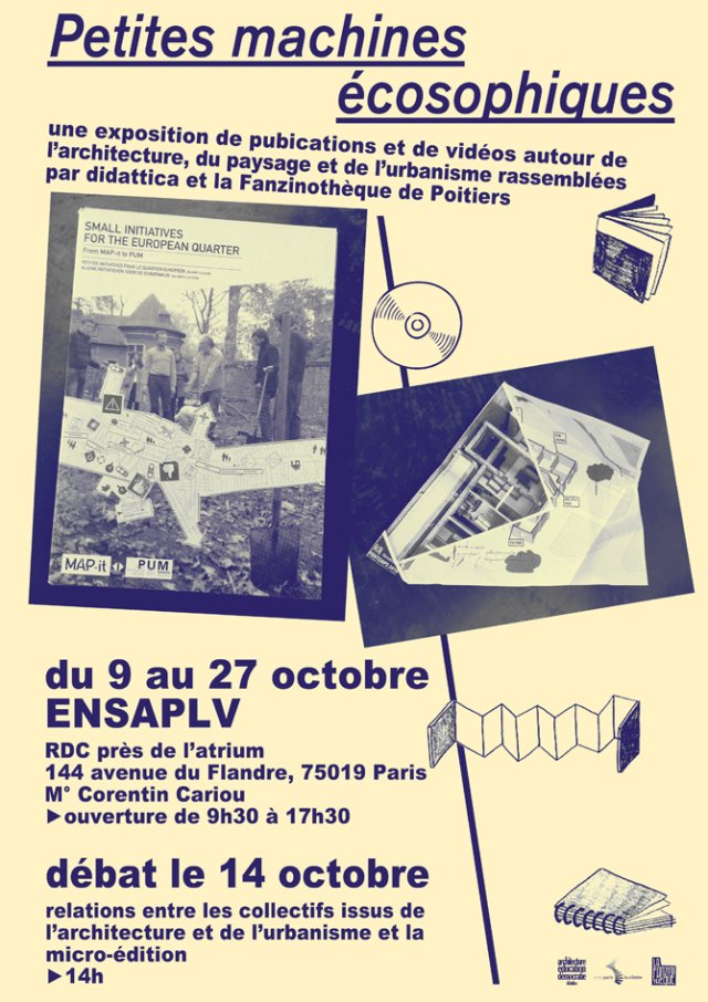 L’association didattica (École nationale supérieure d’architecture de Paris La Villette) et la Fanzinothèque de Poitiers (Confort Moderne) présentent "Petites machines écosophiques", une exposition de microéditions d’architecture d’urbanisme et de paysage.