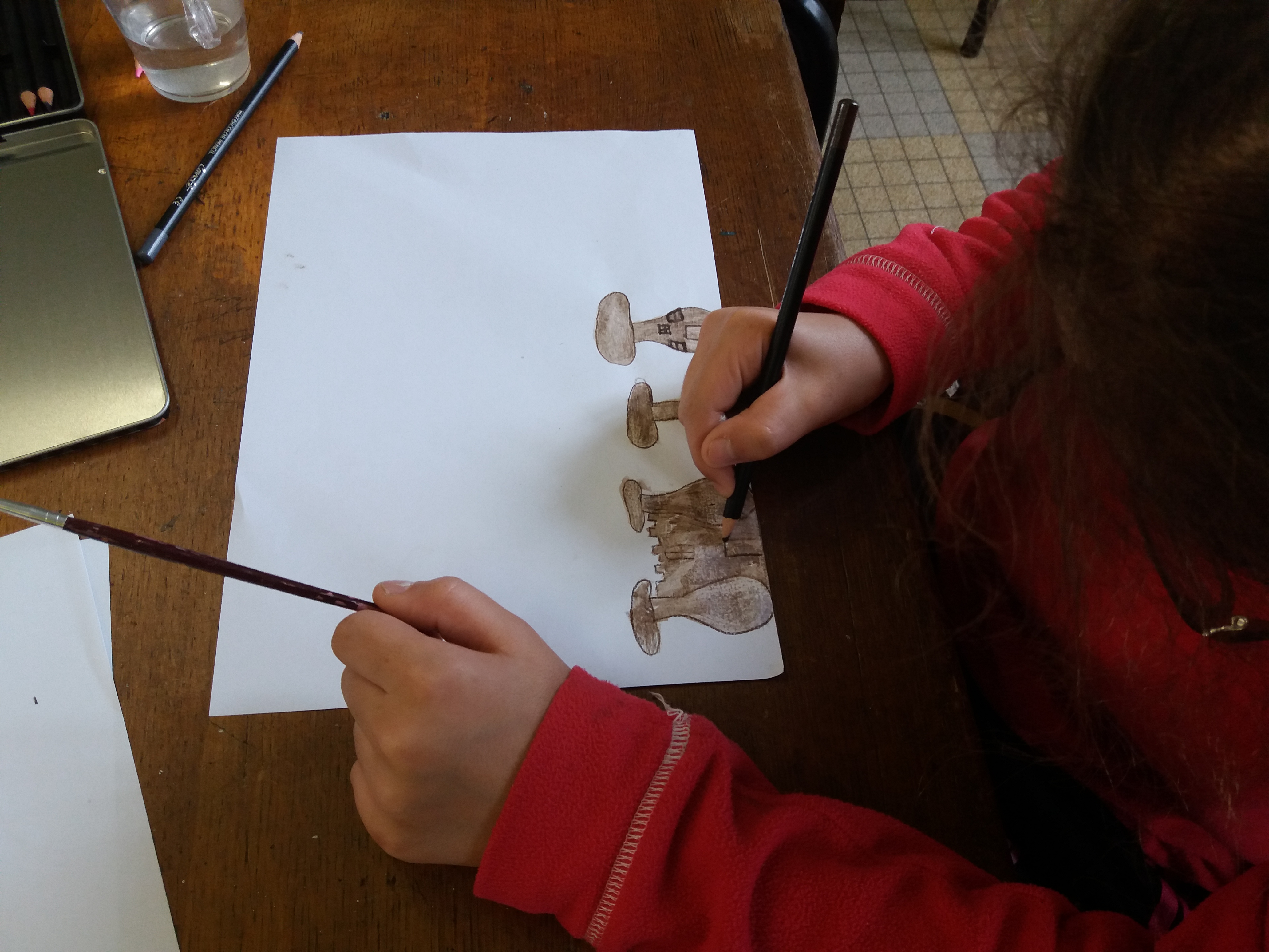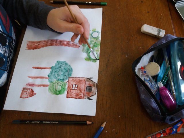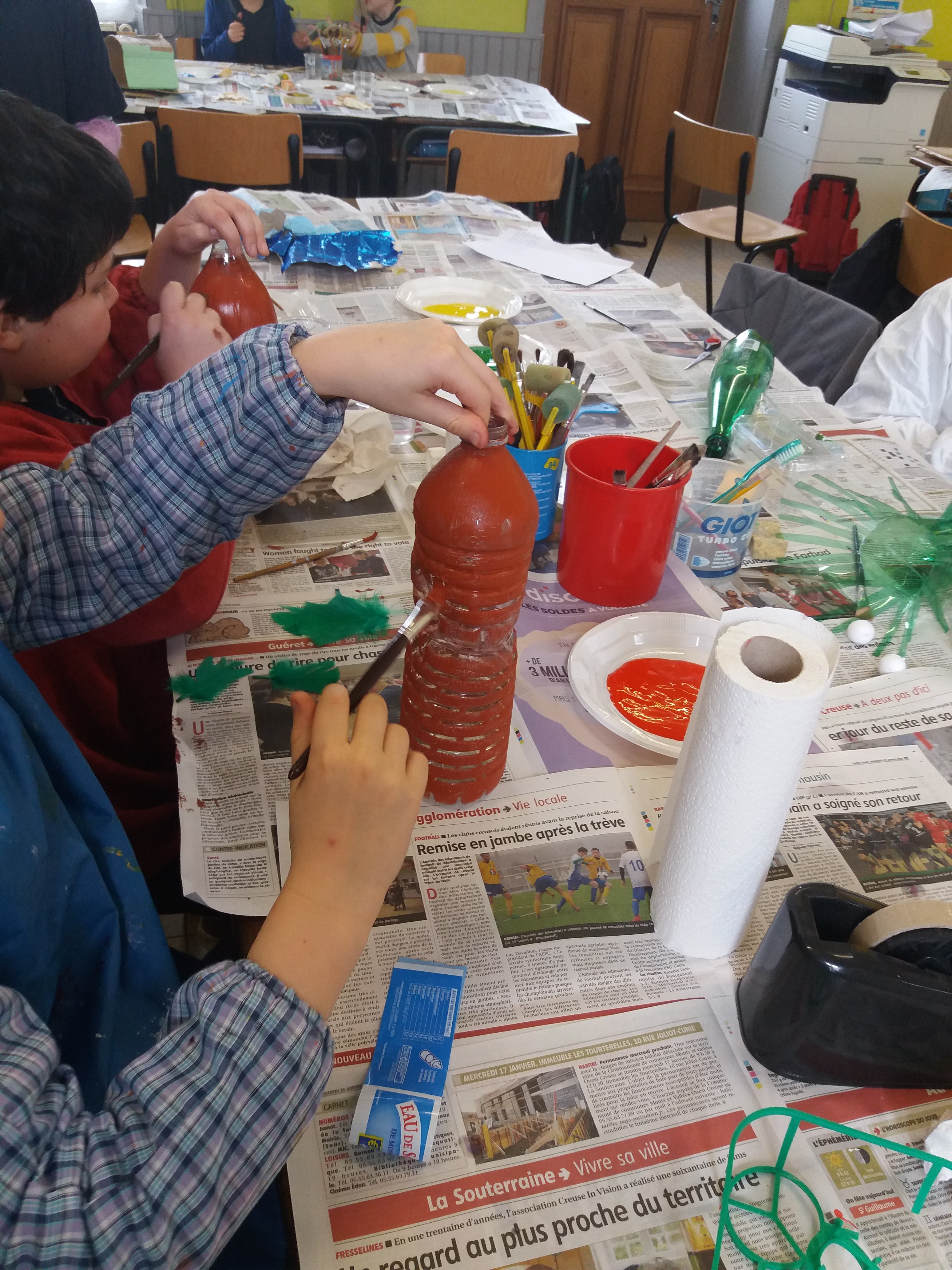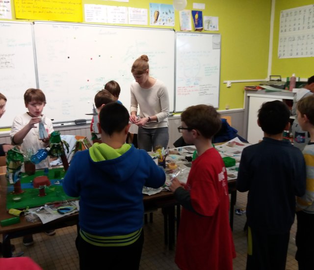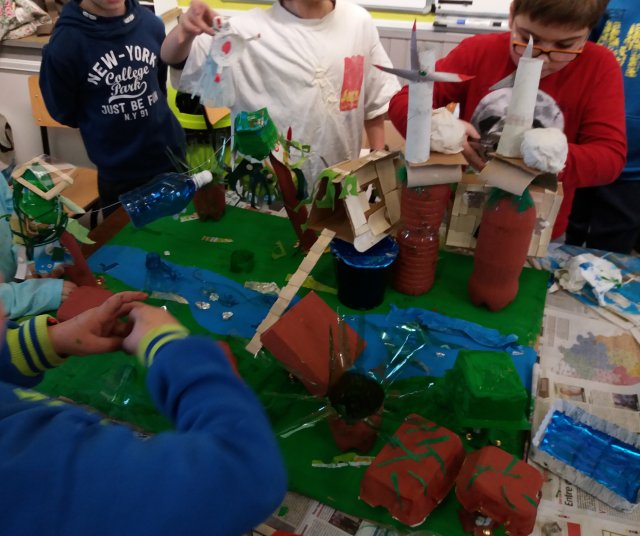 Ils avaient pour cela à leur disposition trois outils : des crayons aquarellables pour dessiner, des contes, et des matériaux de récupérations (issus de la poubelle « emballage et carton ») afin de réaliser une maquette.