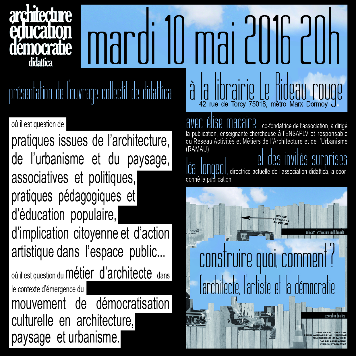 à l’occasion de la parution de l’ouvrage "Construire quoi, comment ? L’architecte, l’artiste et la démocratie"
