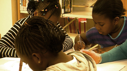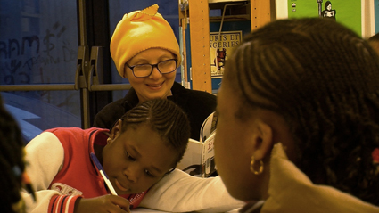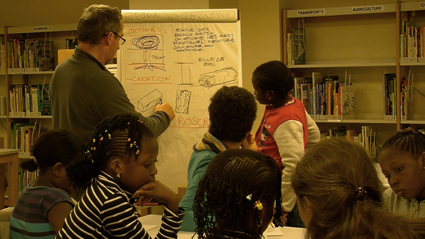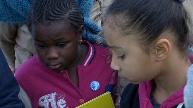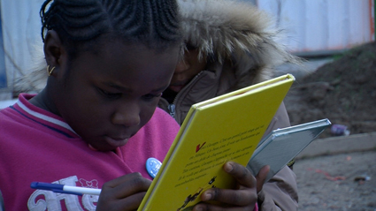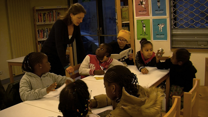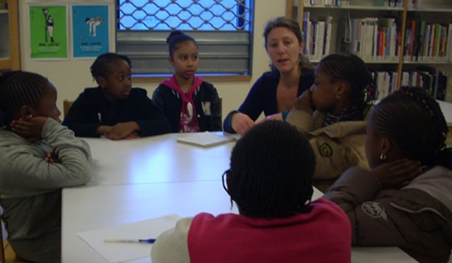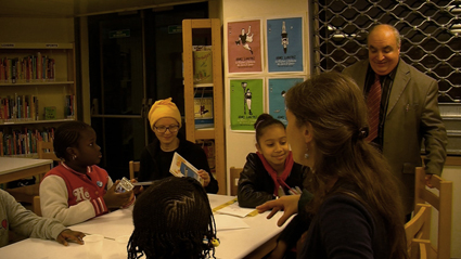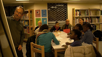 A la médiathèque, Horia, entourée des six des sept filles, les accueille.