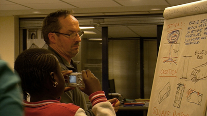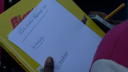 Les photographes, ce sont Sétou et Bidia, les questions, ce sont Bidia, Diaba et Maëlys qui les posent, et les prises de notes, Hawa, Diaba secondées par Sephora et Maëlys. Dans le deuxième temps de l’atelier, les rôles ont tourné.