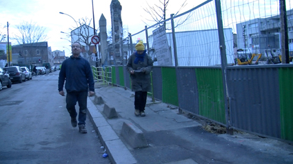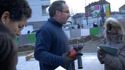 En route pour le chantier ! Alessandrat attend la troupe à l’entrée, avec Jean-Marc, son partenaire et Antonio, le responsable du terrassement du chantier.