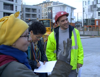 L’interview touche à sa fin. Les filles remercient Alessandrat et Jean-Marc. Quel privilège d’avoir pu entrer sur le chantier alors que le square n’est pas fini. Ce square qui a une très grande importance pour les filles. Non seulement il constitue leur principal terrain de jeux, et c’est un lieu de rencontre, d’échange et de partage, le cœur de leur quartier, le Landy.