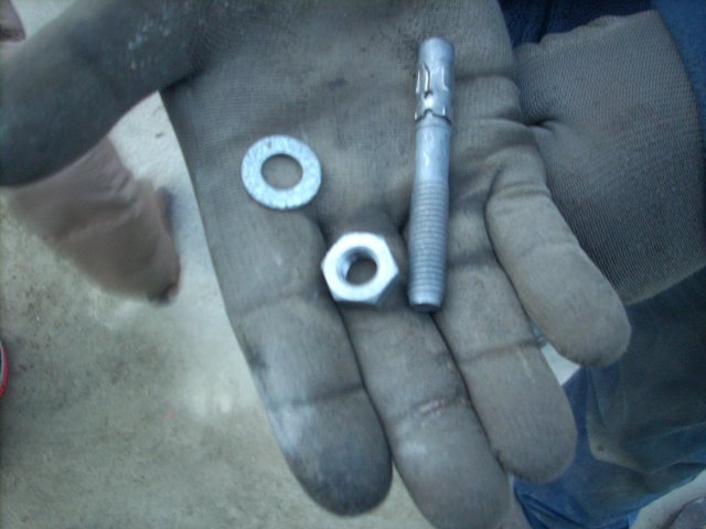 Puis, il présente les outils qui vont permettre la fixation : le perforateur, la boulonneuse et le marteau. Et la fixation s’opère avec une cheville de fixation.