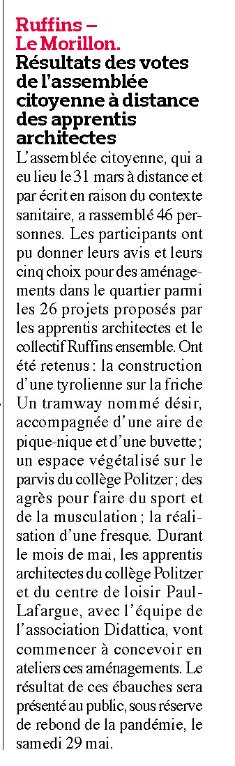 • Résultats des votes de l’assemblée citoyenne à distance des apprenti.e.s architectes