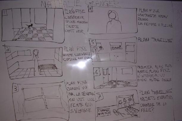 Un aspect important de la séance a été le développement d’un regard analytique sur des images cinématographiques : l’exécution d’une description détaillée et d’une analyse systématique des séquences de film afin d’aborder la fabrication d’un film. Nous avons parlé notamment de l’usage des contrastes noirs et blancs, de la musique et du silence pour indiquer une ambiance, des plans fixes et des plans mobiles appelés « travelling », des plans rapprochées sur un visage, de la présentation des objets personnels pour indiquer la personnalité d’un personnage et sa culture. Concernant les dynamiques interpersonnelles de la séance d’atelier, il y a eu des réflexions sur les rôles de chacun dans l’atelier. Dans ce contexte, la maîtrise de la langue française joue un rôle. L’analyse des séquences de film a donné lieu à un exercice d’expression personnelle, de prise de parole dans un groupe, de langue qui n’est pas sa langue maternelle. Aussi, les Rromnis ont parlé de leur participation à l’atelier en rapport avec leurs rôles actifs quand elles étaient des écolières en Roumanie.