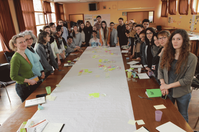 Les étudiants participant à ce workshop étaient de futurs graphistes, designers « produit », designers d’espace et architectes. La richesse et la diversité de leurs compétences a constitué un atout dans les approches qu’ils ont développées. Le groupe était composé de 16 étudiants issus du Dsaa Eco-conception et design responsable et 12 étudiants des écoles nationales d’architecture.