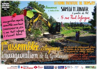 Nous avons le plaisir de vous inviter le SAMEDI 11 JANVIER à 14h à ce double évènement exceptionnel qui nous permettra de décider des aménagements futurs du Terrain de la bonne aventure du tramway et du parvis du collège Politzer de Montreuil-sous-Bois en Seine-Saint-Denis.