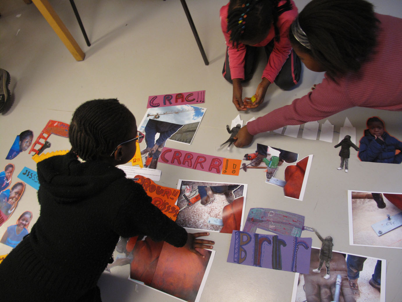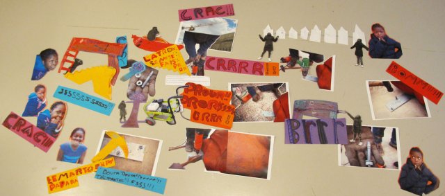 Pour finir le photomontage du chantier, Stella demande aux filles d’y ajouter les bruits qu’elles viennent d’écrire.