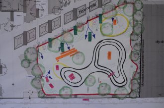 La maquette au 1/50e de la structure ludique pour les 6-12 ans, conçue par Alessandrat, comme étude, à partir des travaux des enfants et des indications du groupe de travail, circule de mains en mains.