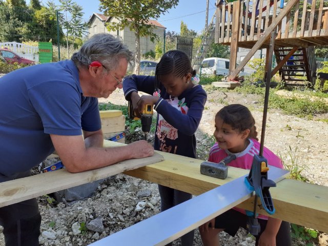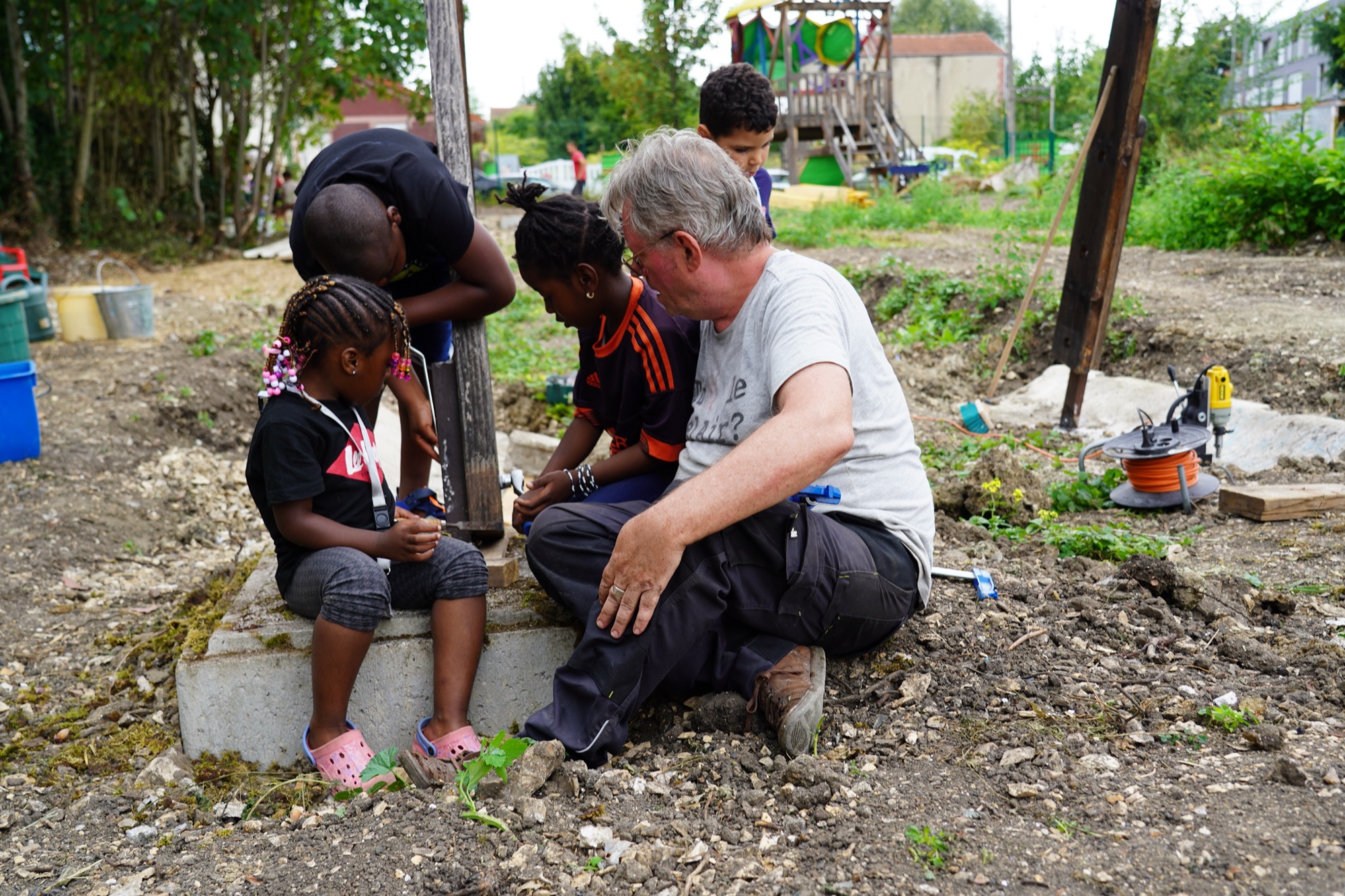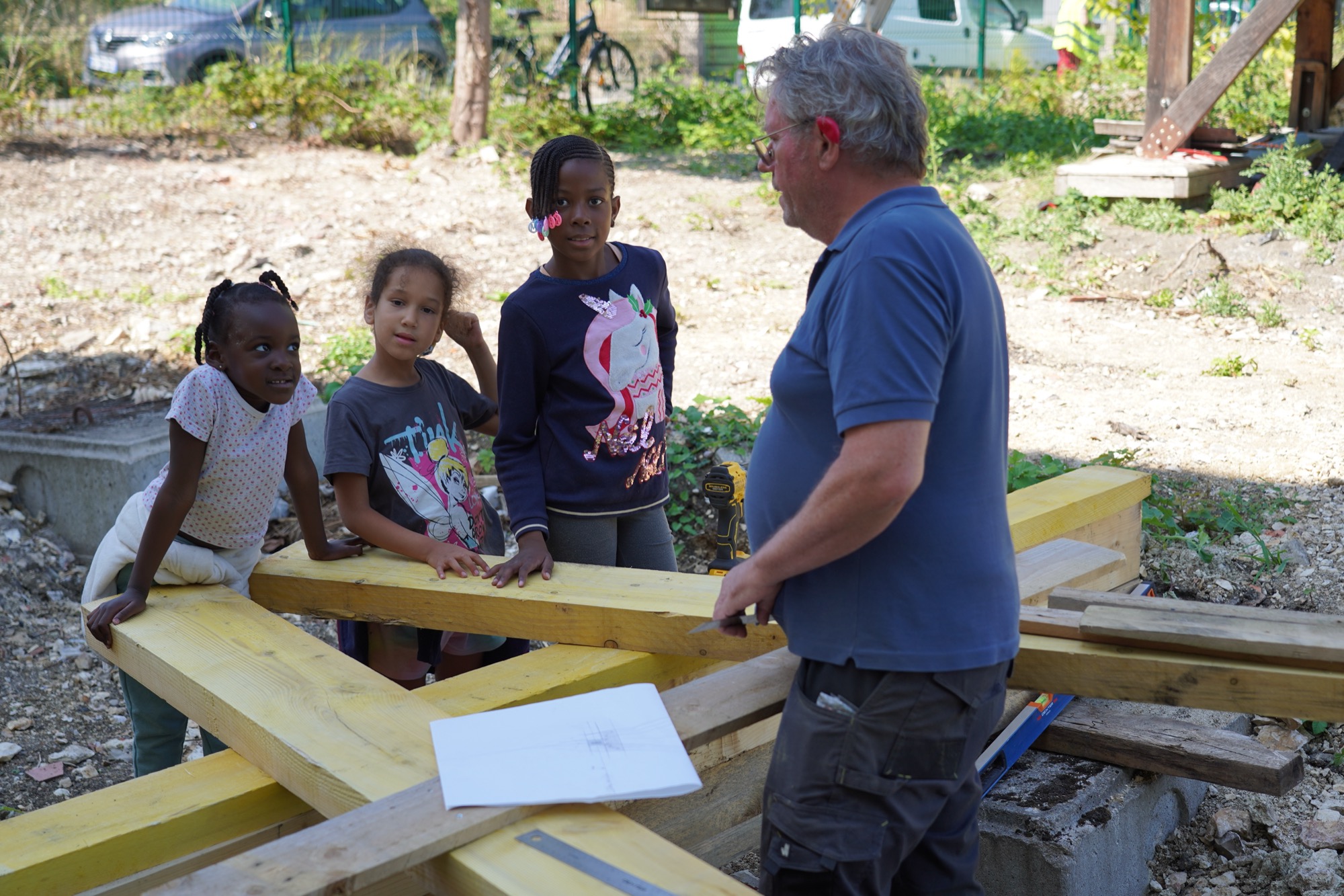 Chantier mené avec Bruno, Pauline, Ricardo du Vaisseau, Léa, Basile, Jeanne, Hervé, Guilhem, Sandra de didattica et des voisins, amis et enfants du quartier emmenés par Marianne de l’accueil loisirs Paul Lafargue.