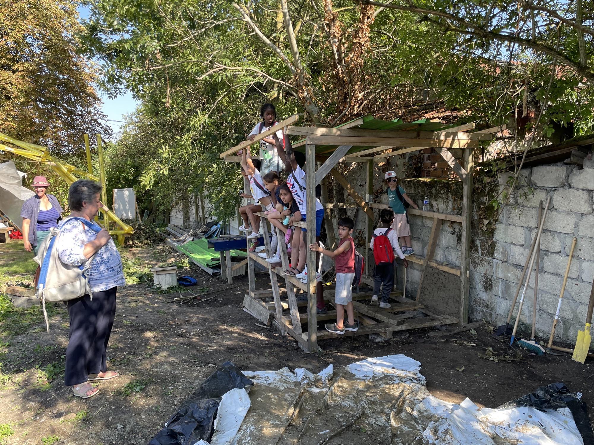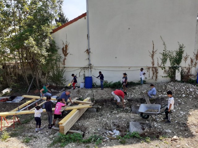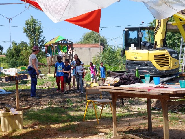Chantier mené avec Bruno, Pauline, Ricardo du Vaisseau, Léa, Basile, Jeanne, Hervé, Guilhem, Sandra de didattica et des voisins, amis et enfants du quartier emmenés par Marianne de l’accueil loisirs Paul Lafargue.